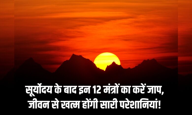 यदि आप अपनी परेशानियों से छुटकारा पाना चाहते हैं और जीवन को खुशहाल बनाना चाहते हैं, तो सूर्योदय के बाद इन 12 मंत्रों का जाप करें। ये मंत्र न केवल आपके जीवन से नकारात्मक ऊर्जा को दूर करेंगे, बल्कि आपके सभी कष्टों का नाश भी करेंगे। तो चलिए जानते हैं, ये 12 मंत्र कौन से हैं और उनका प्रभाव किस प्रकार होता है: