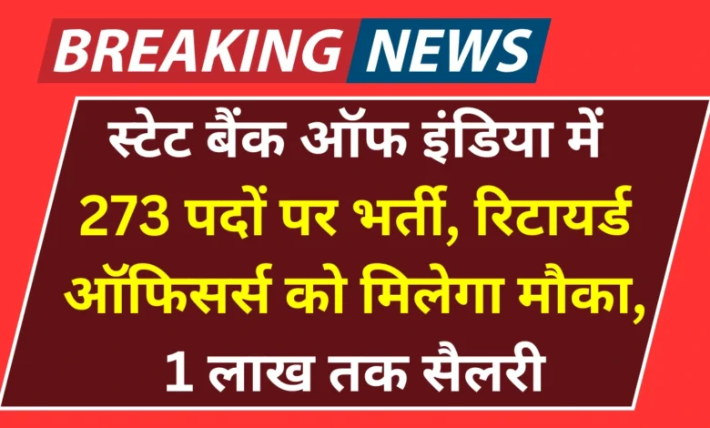 SBI Recruitment: स्टेट बैंक ऑफ इंडिया में 273 पदों पर भर्ती, रिटायर्ड ऑफिसर्स को मिलेगा मौका, 1 लाख तक सैलरी